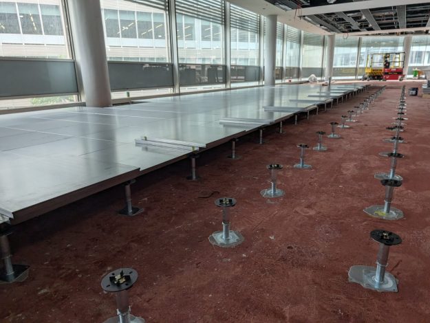 King Edward House in Birmingham proved to be one of our more difficult projects. The installation of the main floor plate were installed in a Gravity Laid Permaflor / Bathage BGM600 PSA medium grade raised access floor system on a Metal Floor pedestal understructure.