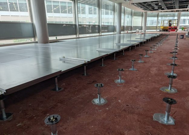 King Edward House in Birmingham proved to be one of our more difficult projects. The installation of the main floor plate were installed in a Gravity Laid Permaflor / Bathage BGM600 PSA medium grade raised access floor system on a Metal Floor pedestal understructure.